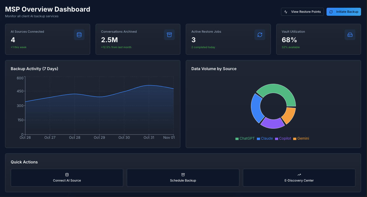 Immutable AI backups, compliance logs, live restore points, and full visibility into AI usage.